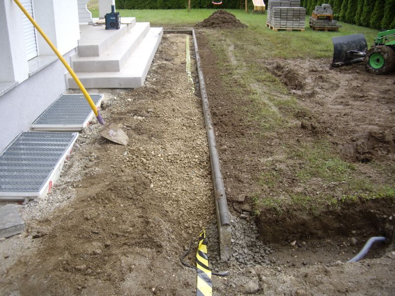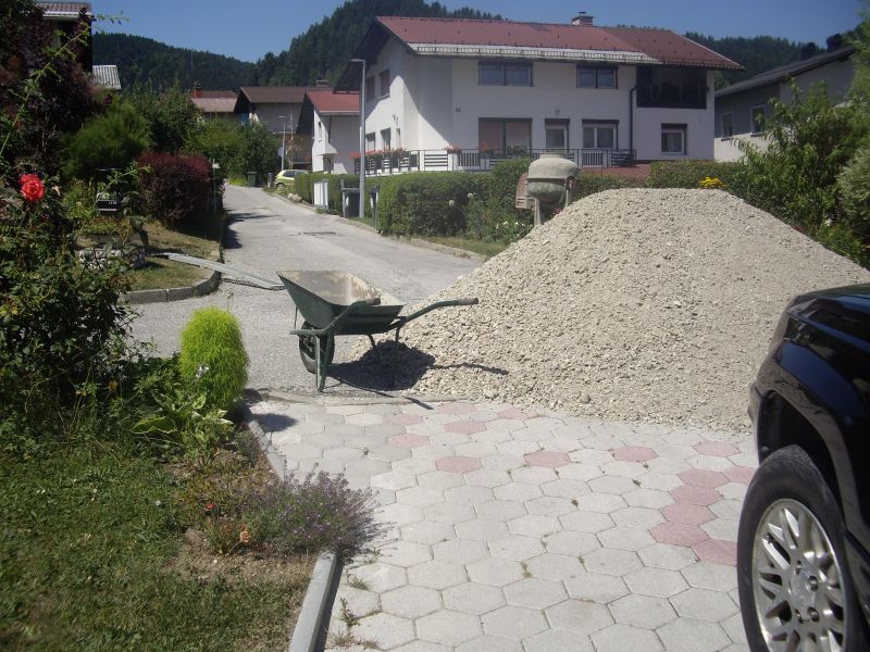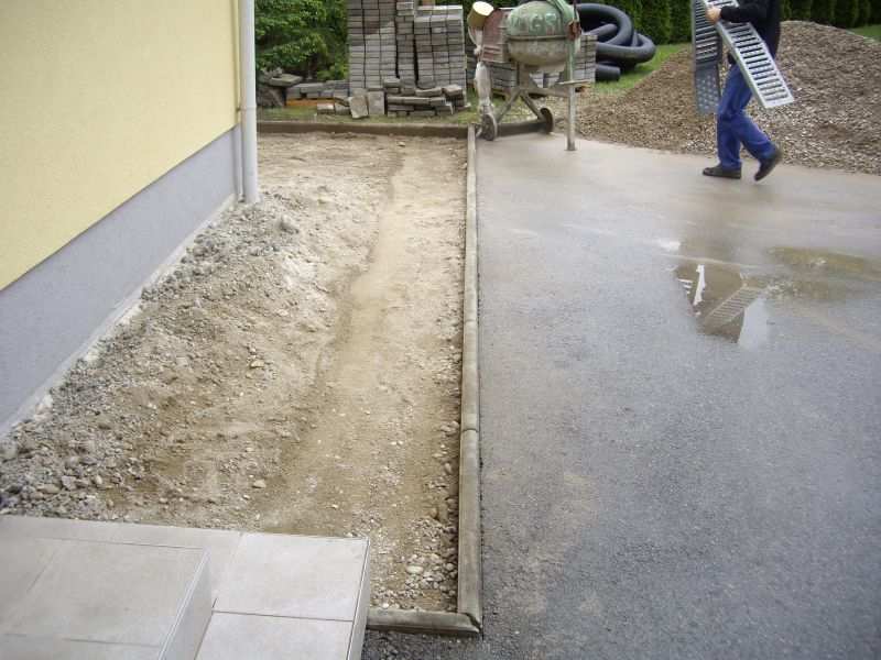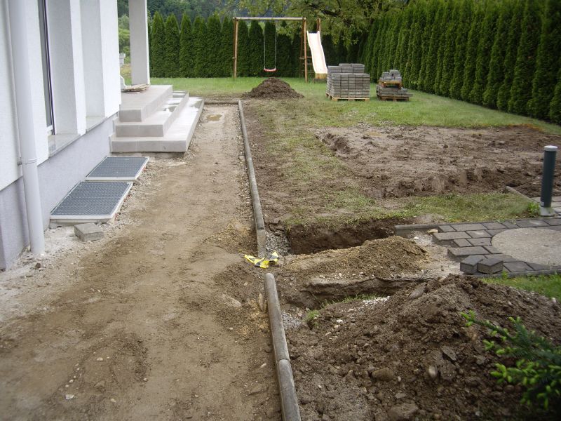 Izvajamo izkope, nasutja in utrjevanje terena, izvedba meteorne in fekalne kanalizacije, izvedba zbiralnikov vode, izdelava podpornih zidov(škarp), polaganje kamna, tlakovcev, plošč in robnikov, asfaltiranje, izdelava ograj.